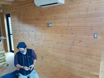 ③設置位置が決まりましたら取付箇所の下地、空配管の有無、壁の厚さ、テレビに接続する機器を確認させて頂きます。