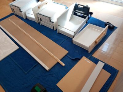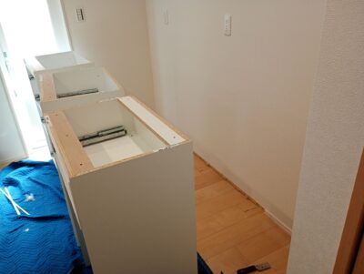 福岡市にてカップボード下台の取付工事です。