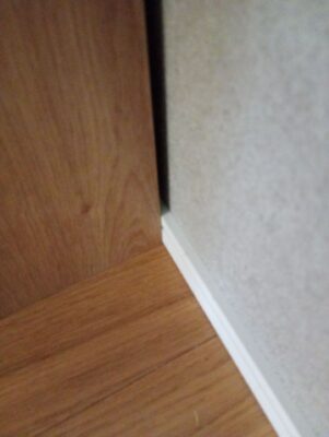 ③カップボードが接触する部分の巾木を取り除きます。(必要に応じて)