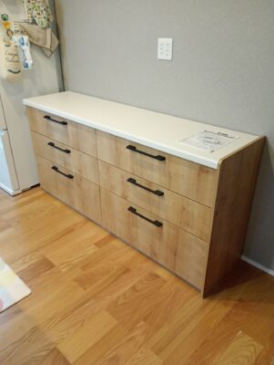 朝倉郡にてカップボード下台の取付工事です。