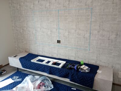③設置位置が決まりましたら取付箇所の下地、空配管の有無、壁の厚さ、テレビに接続する機器を確認させて頂きます。