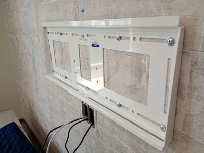 ⑤壁面側に取り付ける金具のビス位置が、テレビの底面からどれくらいの距離か計算します。(補強が必要な場合はこのタイミングで補強を行います。)