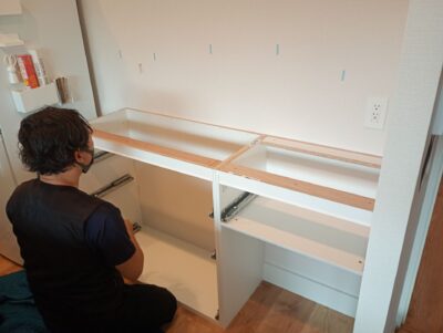 ⑤付属品の取付が終わりましたら壁面側から順番に取り付けさせて頂きます。