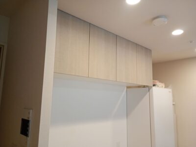 福岡市にてカップボードの上棚部分の取付工事です。