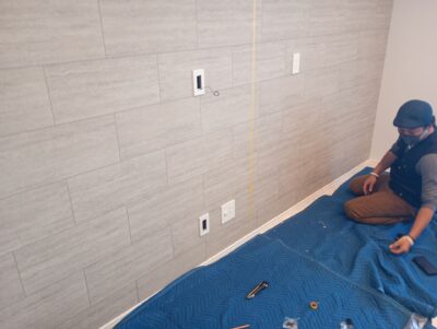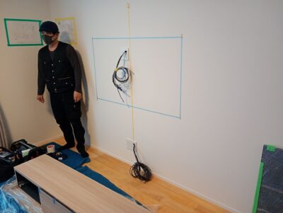 ③設置位置が決まりましたら取付箇所の下地、空配管の有無、壁の厚さ、テレビに接続する機器を確認させて頂きます。