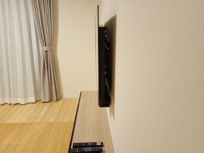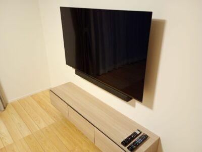 また、壁は完全に壁掛け仕様になっておりましたので特に補強や隠蔽は必要ございませんでした。