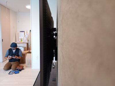 大野城市にて壁掛けテレビとフロートボードの取付工事です。