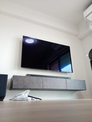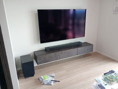 大野城市にて壁掛けテレビとフロートテレビボードの取付工事です。