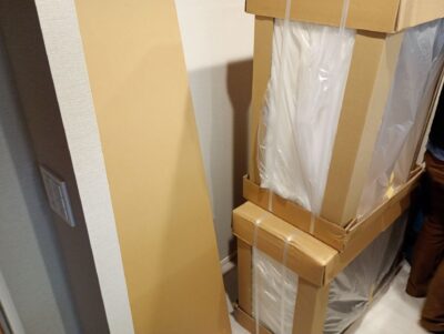⑤付属品の取付が終わりましたら壁面側から順番に取り付けさせて頂きます。