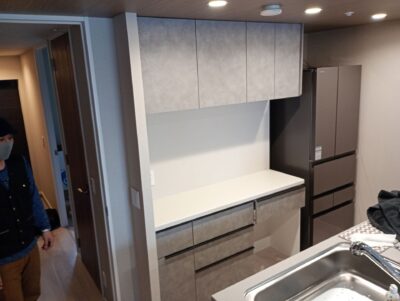 福岡市にてカップボード上下の取付工事です。