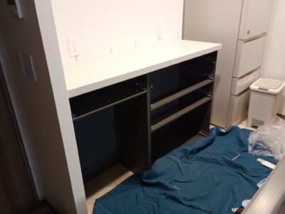 福岡市にてカップボード下台の取付工事です。