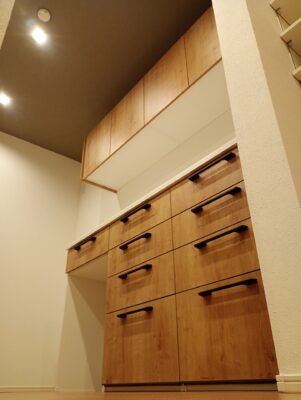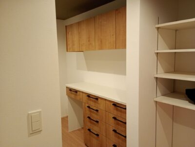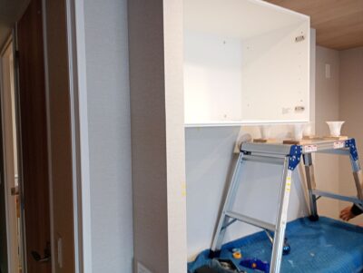 福津市にてカップボードの上棚部分の取付工事です。