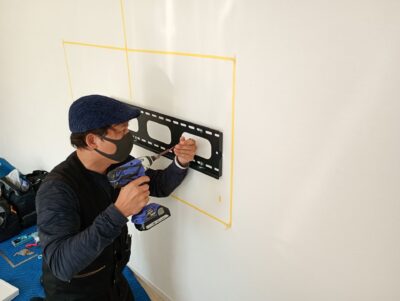 ③設置位置が決まりましたら取付箇所の下地、空配管の有無、壁の厚さ、テレビに接続する機器を確認させて頂きます。