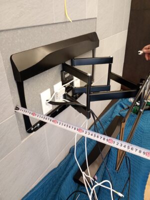 ⑤壁面側に取り付ける金具のビス位置が、テレビの底面からどれくらいの距離か計算します。(補強が必要な場合はこのタイミングで補強を行います。)