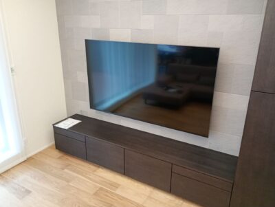 春日市にてカップボード下台と、壁掛けテレビの取付工事です。