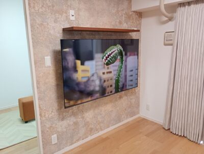 また、壁は完全に壁掛け仕様になっておりましたので特に補強や隠蔽は必要ございませんでした。