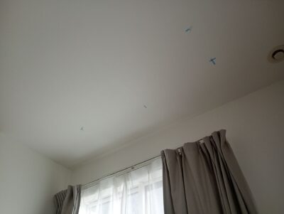②補強がない場合は天井裏の木材、もしくは天井裏の軽鉄下地(アイティプラグが必要)を探します。