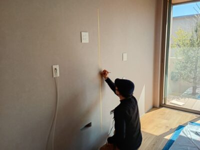 ③設置位置が決まりましたら取付箇所の下地、空配管の有無、壁の厚さ、テレビに接続する機器を確認させて頂きます。