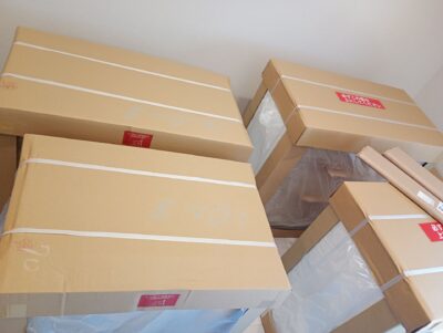 ⑤付属品の取付が終わりましたら壁面側から順番に取り付けさせて頂きます。