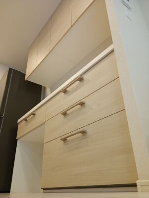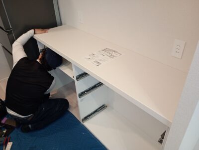 福岡市にてカップボード下台、可動棚、ウォールシェルフの取付工事です。
