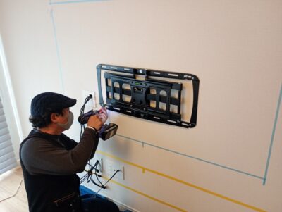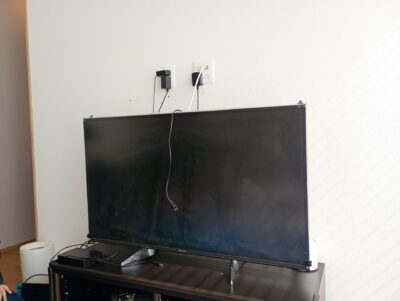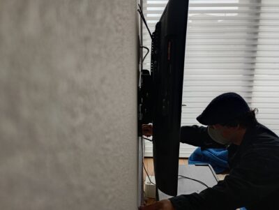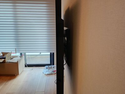 また、壁は完全に壁掛け仕様になっておりましたので特に補強や隠蔽は必要ございませんでした。