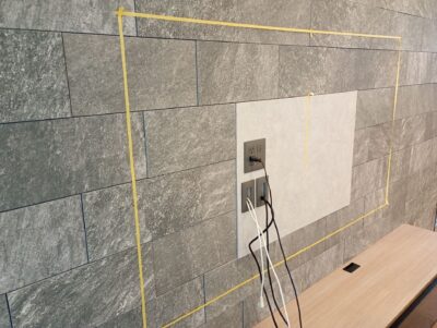 ③設置位置が決まりましたら取付箇所の下地、空配管の有無、壁の厚さ、テレビに接続する機器を確認させて頂きます。