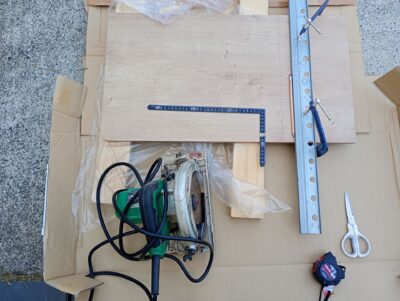 ③商品の届きましたらレールを壁に取り付けます。(板は必要に応じて丸鋸でカットします)