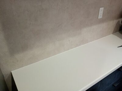 ⑥引き出し類を全て元に戻し、壁面との接触面にコーキングをして完成です。