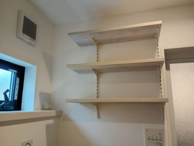 福岡市にて可動棚とウォールシェルフの取付工事です。
