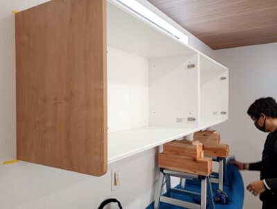 カップボード吊戸棚の取付手順。