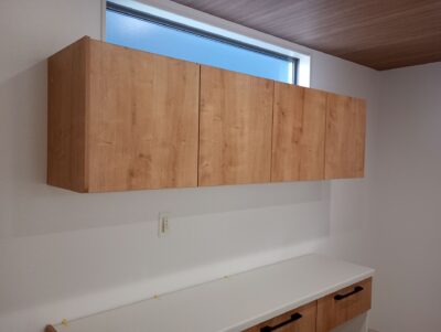 福津市にてカップボードの上棚部分の取付工事です。
