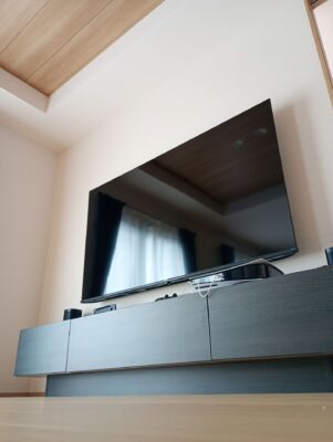 また、壁は完全に壁掛け仕様になっておりましたので特に補強や隠蔽は必要ございませんでした。